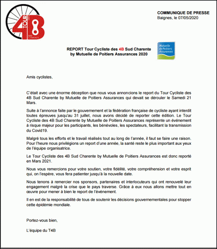 Le Forum France > Poitou Charentes > Charente > T4B repoussé a 2021....