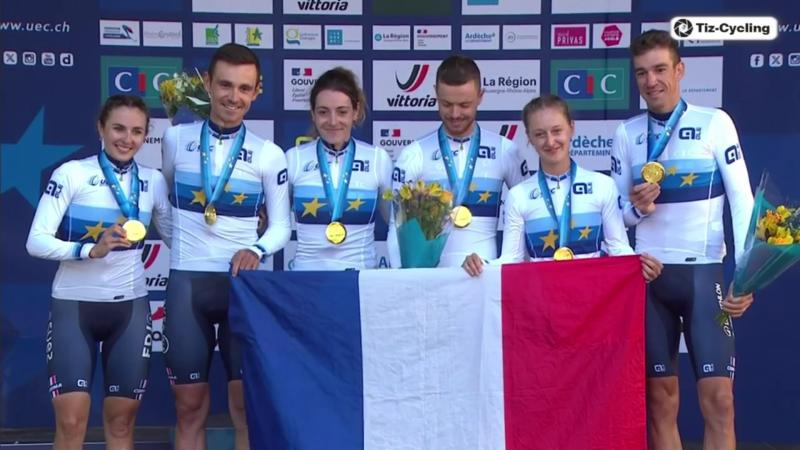 Et cet après-midi rebelote avec le Relais Mixte Élites qui prend l'Or et revêt le maillot aux étoiles!